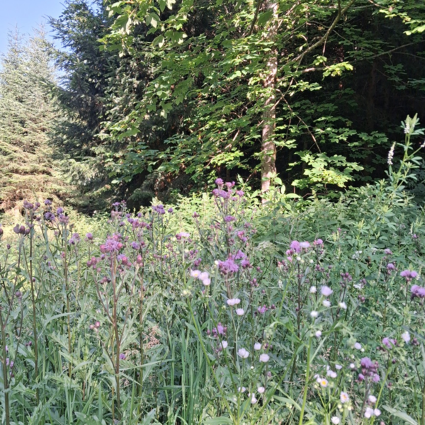 Vom Tagwerk ... Trachtbeobachtung: Bei uns kommt seit 5 Tagen nichts mehr rein. Sehr deprimierend. Wenn Fichte und Tanne trocken sind, könnnen unsere Bienenvölker im Sommer, bei schönsten Wetter -über Mittag zu heiß- nur ganz wenige blühende Pflanzen finden. Hungern die Bienen, füttern wir sie mit Honig. Eine große Zahl der blütenbesuchenden Wildinsekten ... beißt ins Gras!