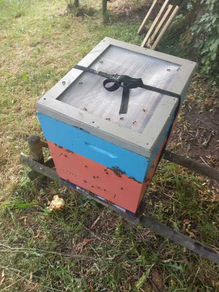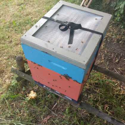 Zwei Tage zurück. Sonntagmorgen, 6.00. Überraschung: ?! Völker sind schon sehr aktiv. Trotzdem: Verschließen der Fluglöcher. Verladen. Abfahrt. Die daheimgebliebenen Flugbienen? Finden bei den "Standvölkern" Aufnahme.
