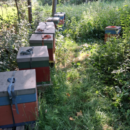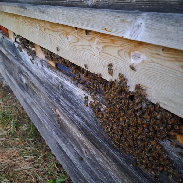 Nachmittags ... Völker im Ried? Was tut sich? Noch wenig. Die schlecht Bevorrateten kriege kandierten Honig auf die Wabengassen gedrückt ... der Abends, bei derra Hitz!, unten rausläuft ... ein Tag, zum Vergessen, nein, zum Lernen... die Bienen haben sich rechtzeitig in Sicherheit gebracht und innerhalb einer Tag-und Nachtschicht alles in Ordnung gebracht. Wenn Bienen verzeihen können... so bitte ich sie darum.